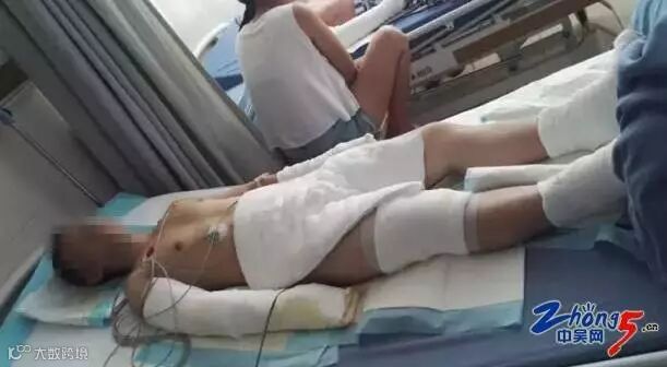 四人当中,除了小儿子伤势较轻,夫妻两人和大儿子都被严重炸伤!父亲烧伤面积达90%,母亲和大儿子均达50%,目前还在重症监护室抢救!