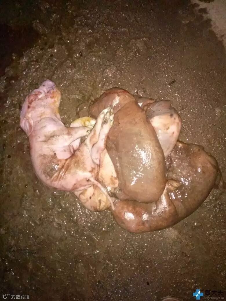 母猪无临床症状,可见木乃伊化、死胎、畸形仔、弱仔: