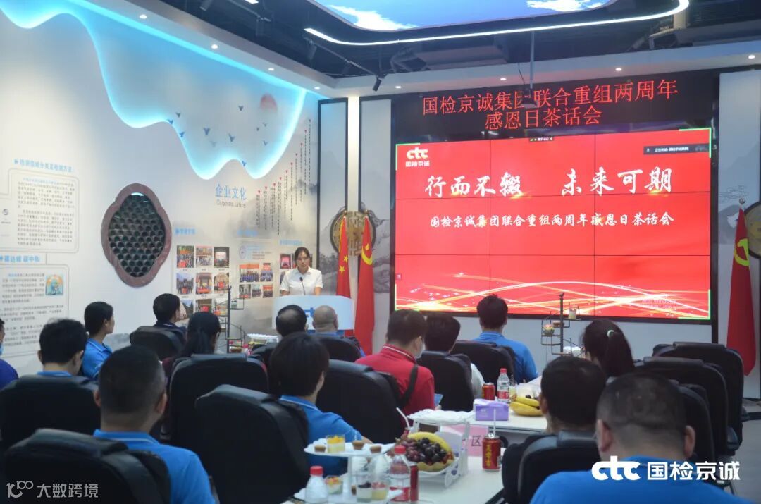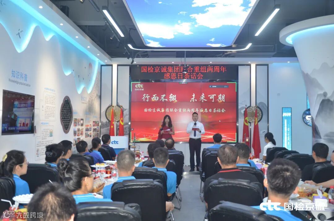2022年7月27日下午,国检京诚集团隆重举行国检京诚联合重组二周年感恩日茶话会,全国各地分子公司客户代表、员工家属通过线上视频方式出席活动,集团领导、干部员工代表共200余人参加本次活动。