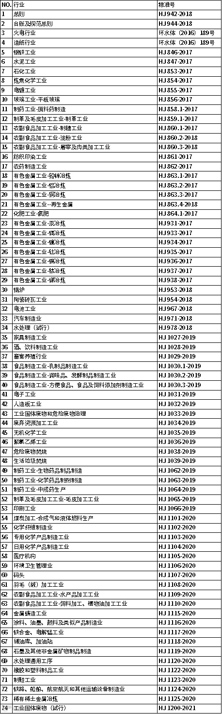 排污许可证行业清单: