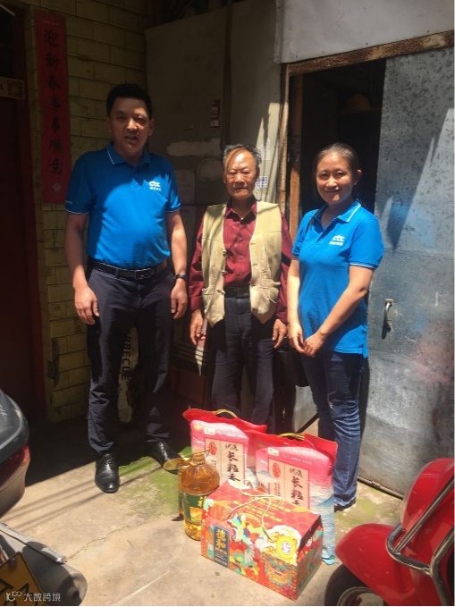 慰问组为老人送上大米、食用油等慰问物品,和老人闲话家常,询问他们的身体状况和日常生活起居,叮嘱在疫情防控期间做好个人防护的注意事项。慰问组的到来让老人感受到了来自党和社会的温暖和关怀,老人对慰问组的关心表达了感谢。