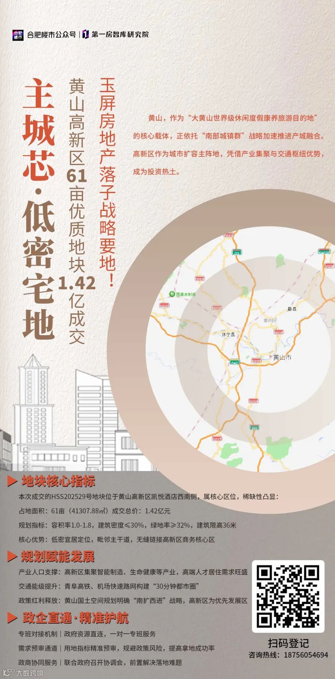 1.42亿落子!黄山高新区61亩低密宅地成交
