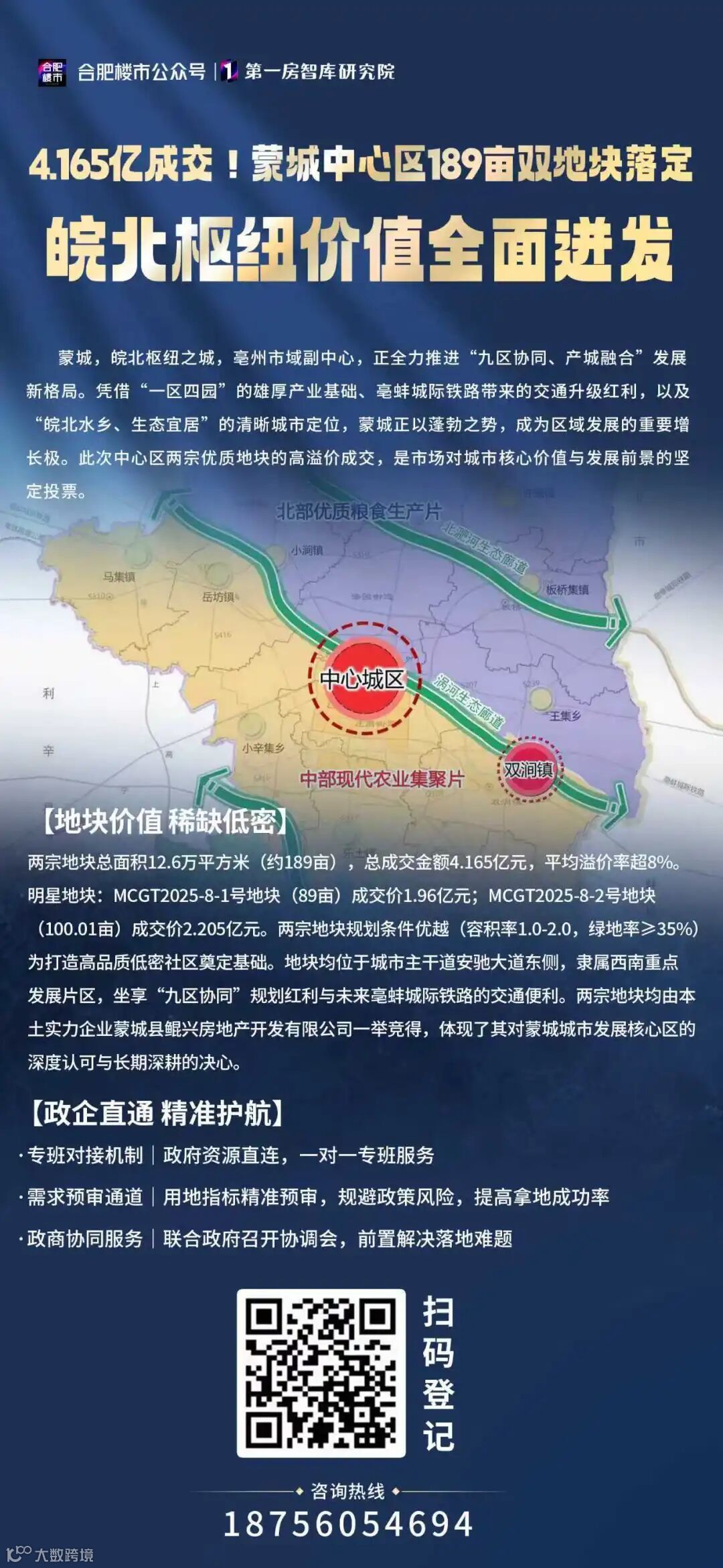蒙城此次土地拍卖,以4.165亿元的总成交价书写了年度供地收官战的亮眼答卷。双地块的成功出让,不仅是短期市场需求的精准响应,更是长期空间战略的实质性落地。在国土空间规划与产业人口红利的双重驱动下,蒙城正朝着“现代化中等城市”目标稳步迈进。未来,随着交通枢纽与城市配套的持续升级,中心区地块价值有望持续跃升,为投资者与居民创造共享发展成果的宝贵机遇。