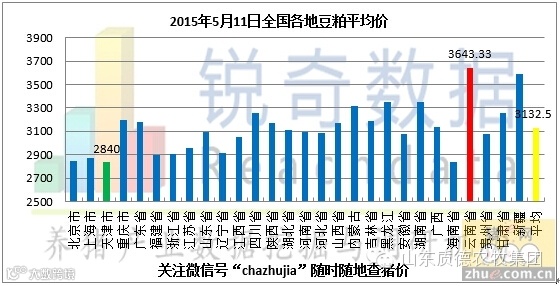 据猪e网锐奇数据检测当地豆粕报价信息统计,2015年05月11日国内各地豆粕平均价格为3132.50元/吨,较昨日(05月10日)3138.51元/吨下跌6.01元/吨,跌幅为0.19%。据此次检测的省市中,最高价格新疆省3643.33元/吨,最低价格天津市2840.00元/吨(以上价格均为蛋白含量为43%的油厂豆粕报价)。今日油厂豆粕现货报价呈现稳定与下调并存的态势,下调的油厂幅度在10-20元/吨。美国大豆播种进度加快,新季面积增加为市场带来偏空预期,阿根廷收割进度过半,该国港口工人罢工事件尚未完全解决,但装运进度延误仍无法改变大豆丰产的事实。