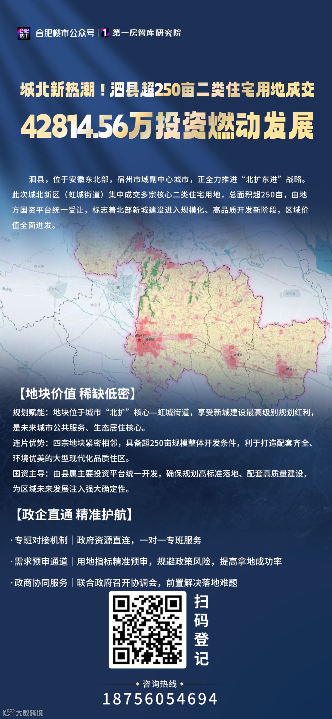 此次四宗地块的成功出让,拉开了泗县北部新城开发建设的大幕。随着这些项目的推进,泗县城市面貌将迎来新的变化,城市功能将得到新的提升,城市价值将实现新的飞跃。