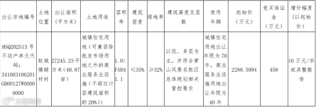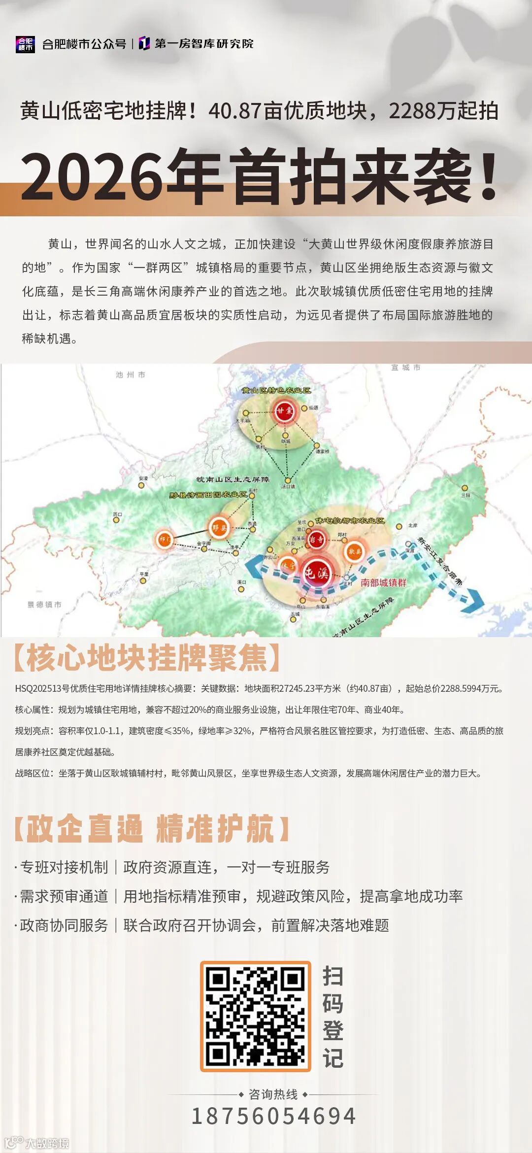 在2025年末的寒冬中,黄山土地市场迎来一记重磅消息!黄山市黄山区自然资源和规划局正式发布公告,暂定于2026年1月11日拍卖一宗编号为HSQ202513号的住宅用地。这宗位于耿城镇辅村村的优质地块,总面积达40.87亩,起始价2288.5994万元,以其低密度、高绿化的规划指标,瞬间点燃了开发商和投资者的热情。作为2026年开年首拍,这宗地块不仅承载着区域住宅市场的新希望,更与黄山市“山水人文之城”的宏大规划紧密契合,有望为黄山高质量发展注入新动能。本文将深度解析该地块的详细数据,并结合黄山市国土空间总体规划,展望其未来潜力。