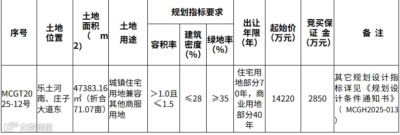 一、此次拍卖出让地块的基本情况和规划设计主要指标如下: