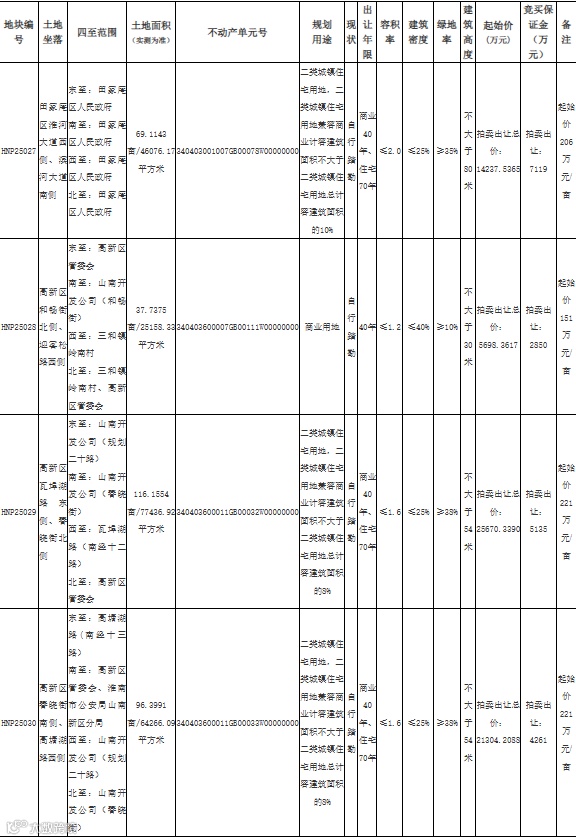 五、拍卖时间和地点:本次国有建设用地使用权拍卖会定于2025年11月28日16:00在淮南市公共资源交易中心一楼开标四室(山南新区政务中心F楼)举行。