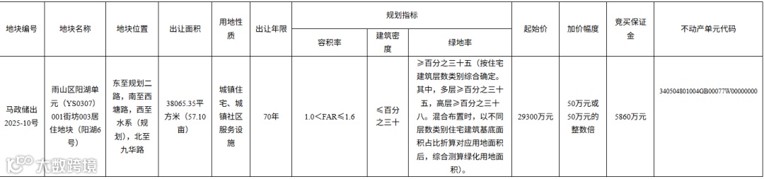 5.本次拍卖出让交纳土地竞买保证金的截止时间为2025年11月10日16时,缴纳竞买保证金须全额缴纳至专户,保证金以实际到账时间为准。经审查,申请人报名申请及保证金到账情况符合该宗地申请条件的,马鞍山市公共资源交易监督管理局将在2025年11月11日16时前确认竞买资格,并通过马鞍山市国有建设用地使用权网上交易系统通知竞买人。
