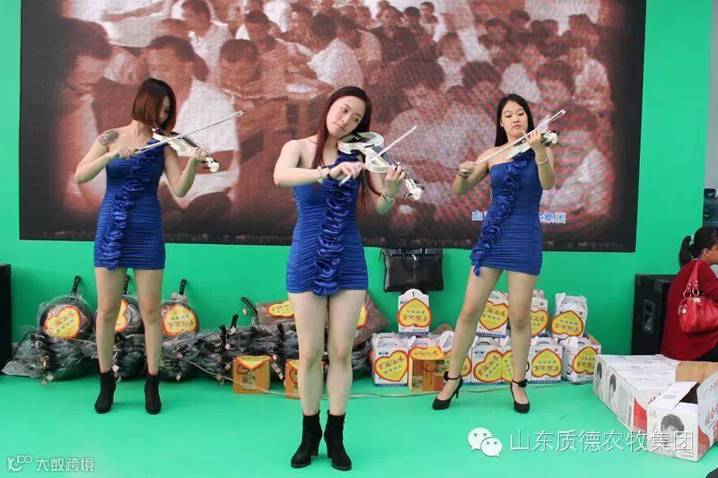 礼仪队的姑娘们身穿中国古典旗袍,身姿婀娜,手举“质德农牧”的宣传牌,吸引了吸引众多观众驻足拍摄。