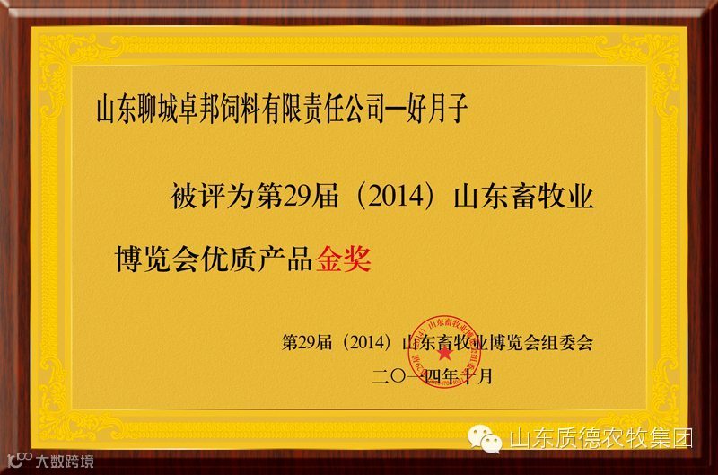 公司好月子、质德50、粒粒酥被评为第29届(2014)山东畜牧业博览会优质产品金奖。