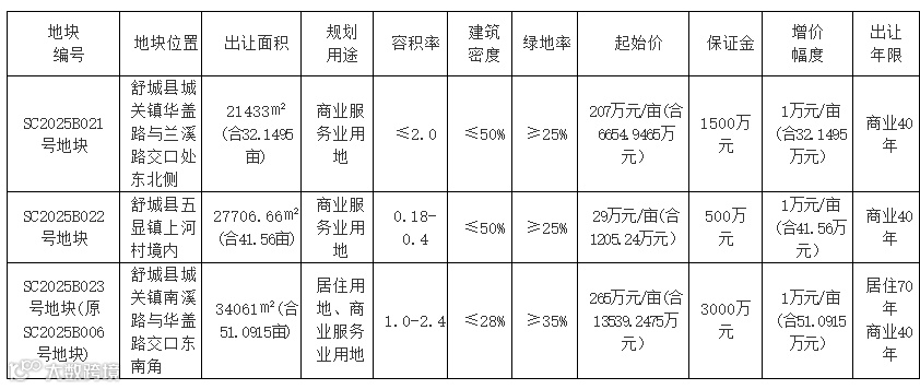 经舒城县人民政府批准,舒城县自然资源和规划局决定出让三幅地块国有建设用地使用权,现将有关事项公告如下: