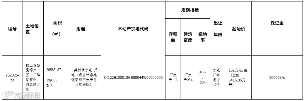 六、申请人可于2025年9月3日至2025年9月30日,到颍上县自然资源和规划局三楼土地储备交易中心(颍上规划馆东楼)提交书面申请。缴纳竞买保证金的截止时间为2025年9月30日16时,以实际到账时间为准。