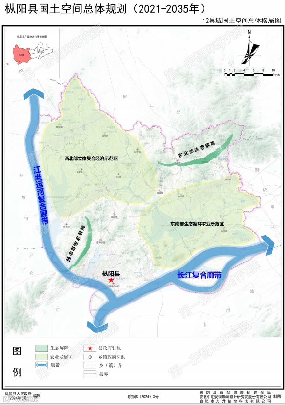 枞阳县构建了 “两带、两区、两屏” 的总体格局。“两带” 依托长江和江淮运河,是经济发展和生态保护的重要区域。长江黄金水道和江淮运河为枞阳带来了便利的水运条件,促进了区域间的经济交流与合作。同时,这两条生态带也承担着重要的生态保护功能,维护着区域的生态平衡。“两区” 即农产品主产区和城市化地区,农产品主产区保障着国家粮食安全和重要农产品供给,城市化地区则是人口和产业集聚的核心区域,推动着城市化进程和经济发展。“两屏” 为县域东北部和西南部的生态屏障,保护着区域的生态环境,提供了良好的生态服务。