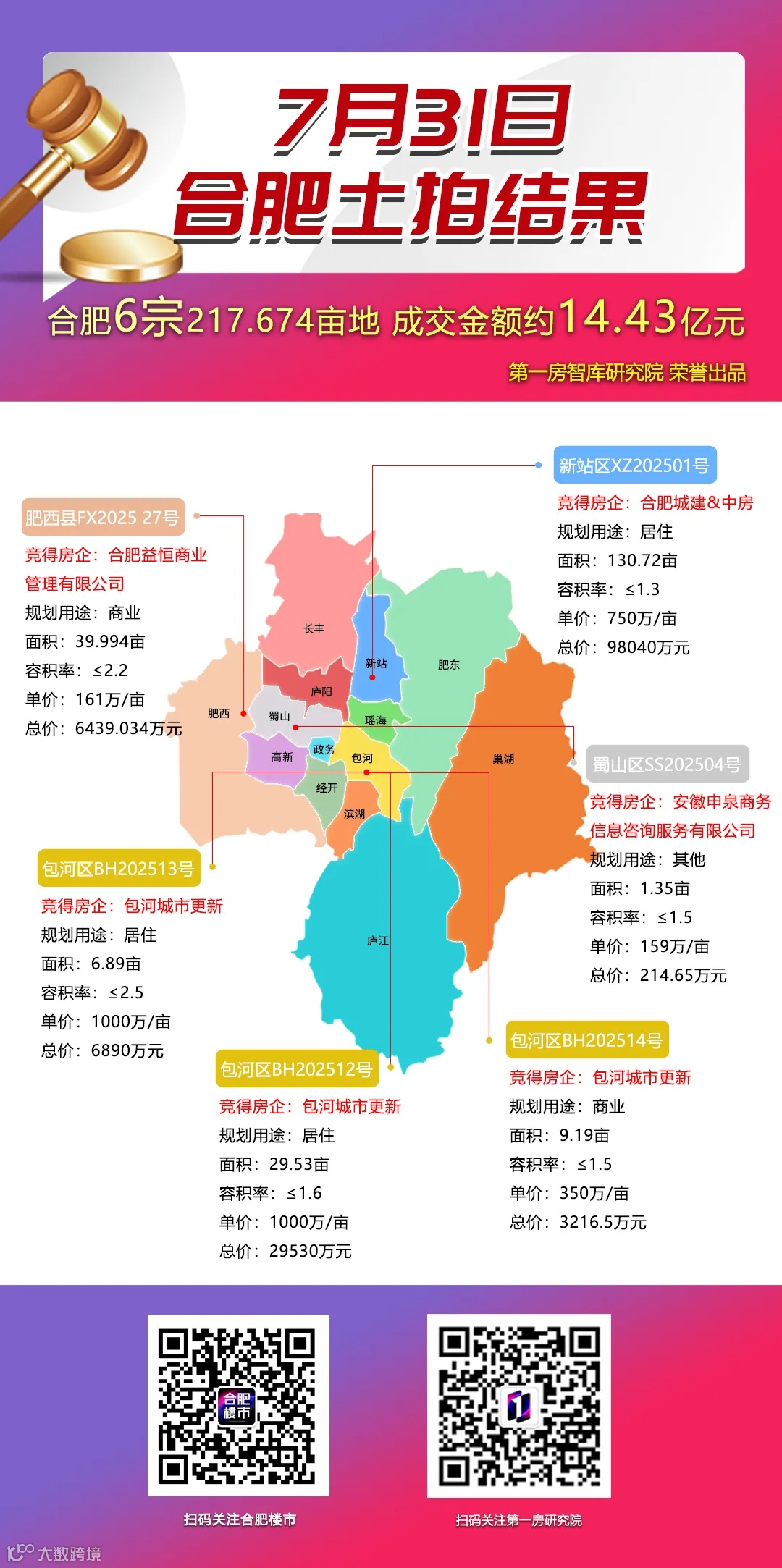 肥西县FX202527号商业地块被合肥益恒商业管理有限公司竞得,成交单价161万元/亩,成交总价6439万元,溢价率0.63%,该地块位于肥西中派片区,地块的出让将进一步完善片区商业配套。