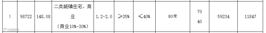 5号宗地位于万水桥路与滁州大道交叉口西南侧,占地面积98722㎡,规划用途二类城镇住宅、商业(商业10%-30%),容积率1.2-2.0,绿化率≥35%,限高80米,使用年限70/40年。