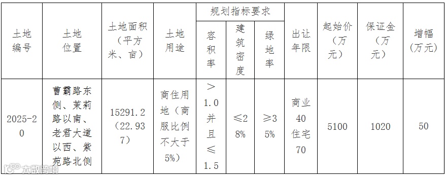 二、中华人民共和国境内外的法人和其他组织均可申请参加。不接受自然人参与竞买、容积率不得≤1.0、不得用于建设别墅和私家庄园。