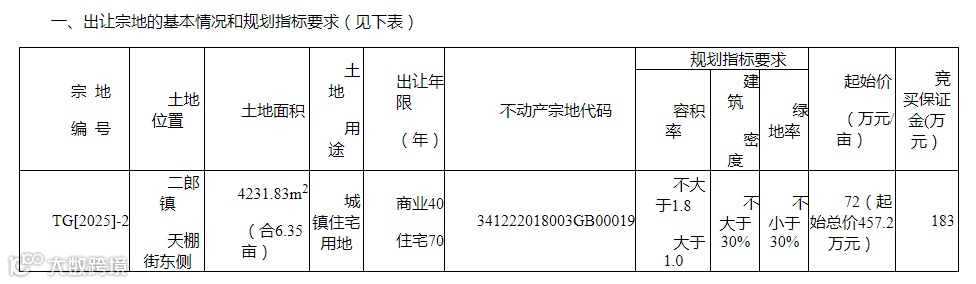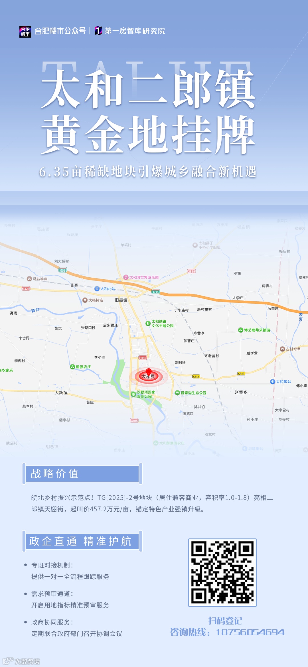 2025年7月24日,太和县土地市场迎来一宗重磅地块挂牌——位于二郎镇天棚街东侧的TG[2025]-2号地块正式亮相。这块面积仅6.35亩的居住兼容商业用地,容积率1.0-1.8,起叫价457.2万元/亩。