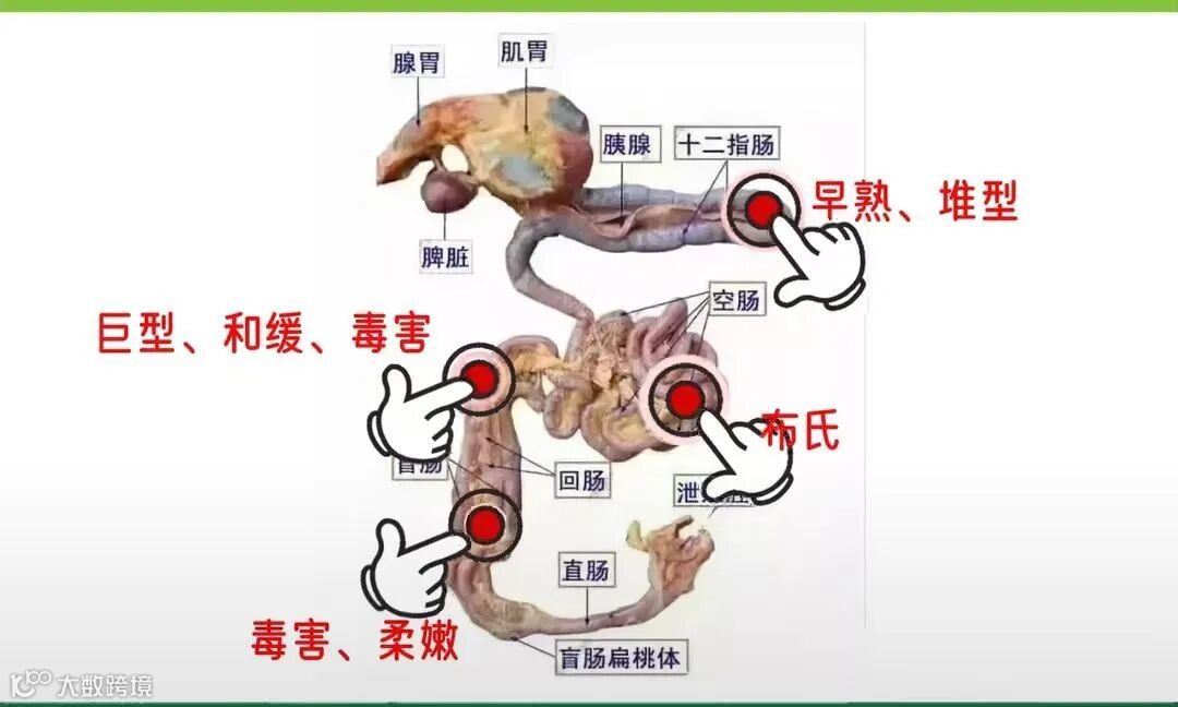 家禽70%的免疫系统分布于肠道,而体内80%的抗体由肠道免疫系统合成。当球虫感染导致肠上皮大面积坏死与脱落。因此,分布在十二指肠、空肠、回肠的淋巴滤泡结构破坏、功能丧失,盲肠扁桃体充血出血坏死,免疫机能也随之降低。从而导致鸡群抗病抗应激能力低下。