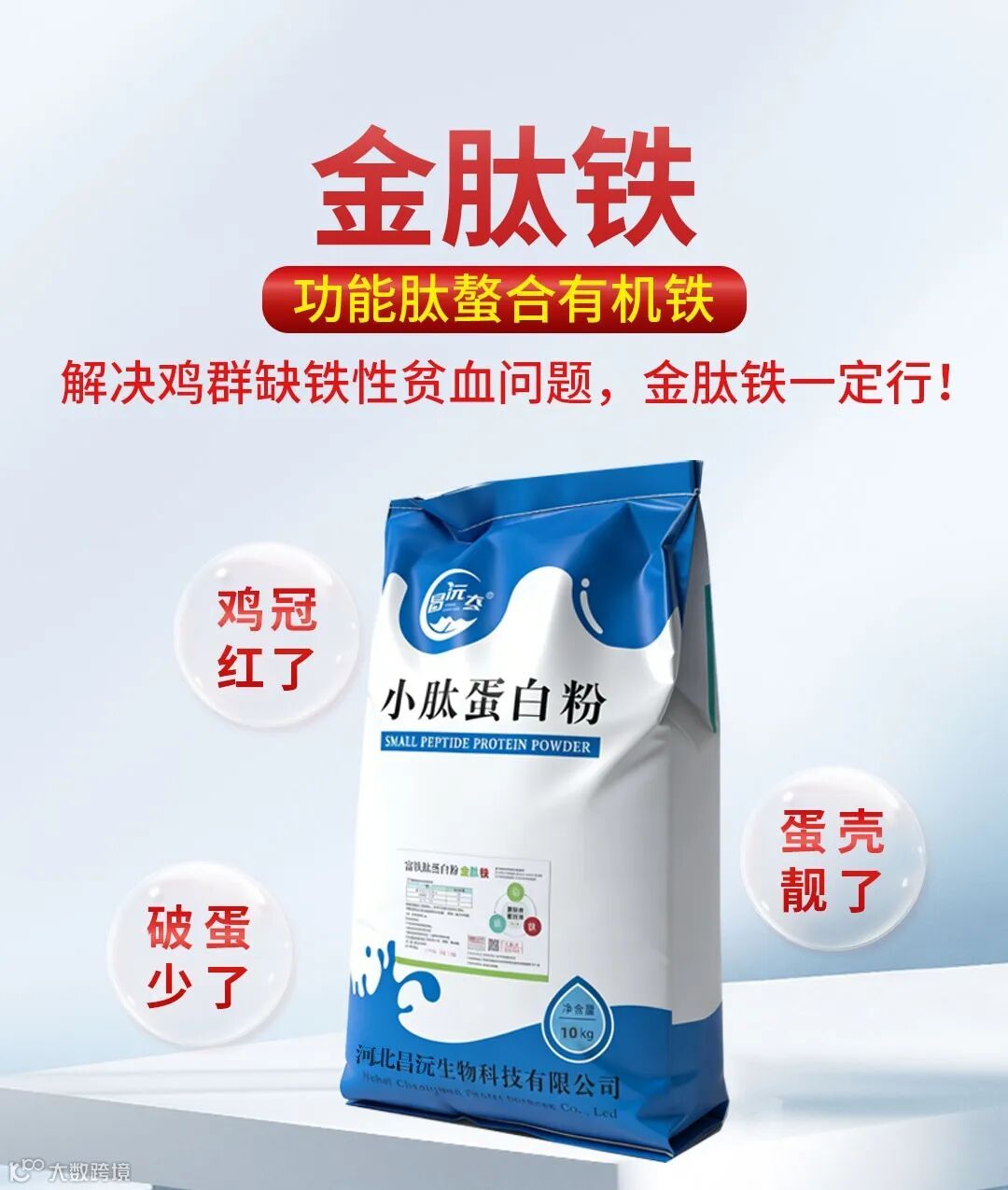 应用细节:蛋鸡缺铁会导致低色素性贫血,雏鸡表现为生长迟缓、羽毛粗乱,成年蛋鸡产蛋率下降、蛋壳变薄;饲料中需搭配维生素C促进铁的吸收,避免与钙、磷、锌过量搭配抑制铁吸收。