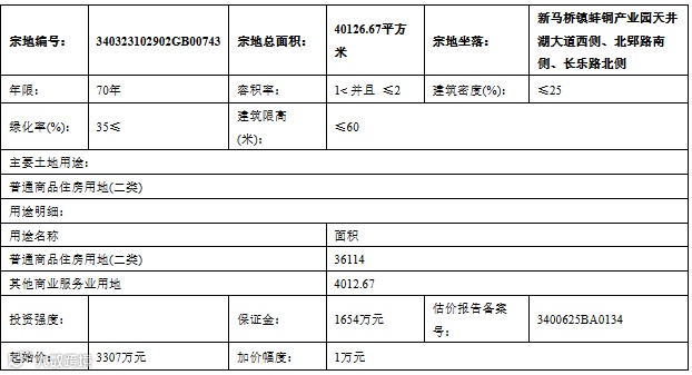 四、本次拍卖出让的详细资料和具体要求,见拍卖出让文件。申请人可于2025年5月14至2025年6月3日到蚌埠市公共资源交易服务网上自行下载获取拍卖出让文件。