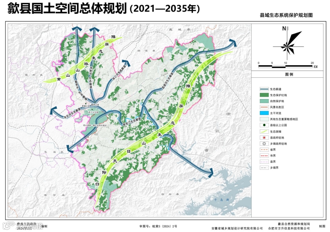 歙县是长三角重要的生态屏障,规划明确提出 “生态优先、绿色发展”的核心理念,目标到2035年生态保护红线面积不低于598.86平方公里,占县域面积近30%。