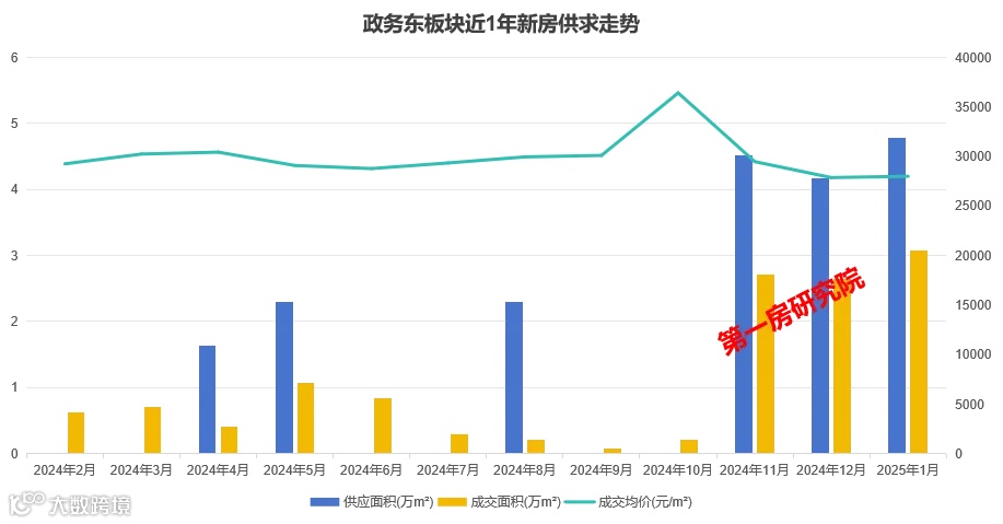 政务东板块的新房市场去年的供应量也是较为充足,2024年新房供应19.7万m²,成交备案12.8万m²。江淮三子入市后,11、12、1月的成交量明显增加。1月新房成交环比增长17%,成交均价也是稳定在2.78万/m²。该板块也是很多改善客群重点关注之一。