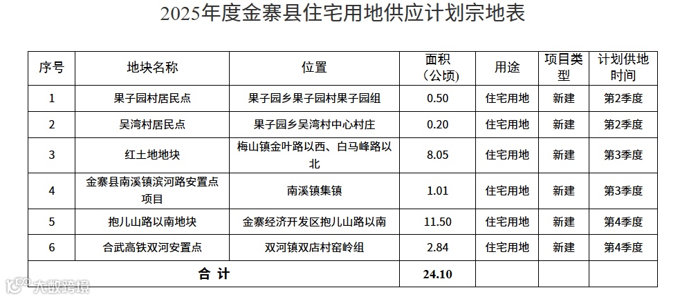 住宅用地 24.10 公顷,占计划供应总量的 3.43% 。住宅用地关系到民生福祉。随着金寨县的发展,人口不断增长,对住房的需求也日益增加。合理规划住宅用地,能够保障住房供应的稳定,满足居民的居住需求,同时也有助于稳定房地产市场。从计划宗地表来看,多个住宅地块分布在不同区域,涵盖了新建的居民点和安置点项目,体现了对不同群体住房需求的关注。