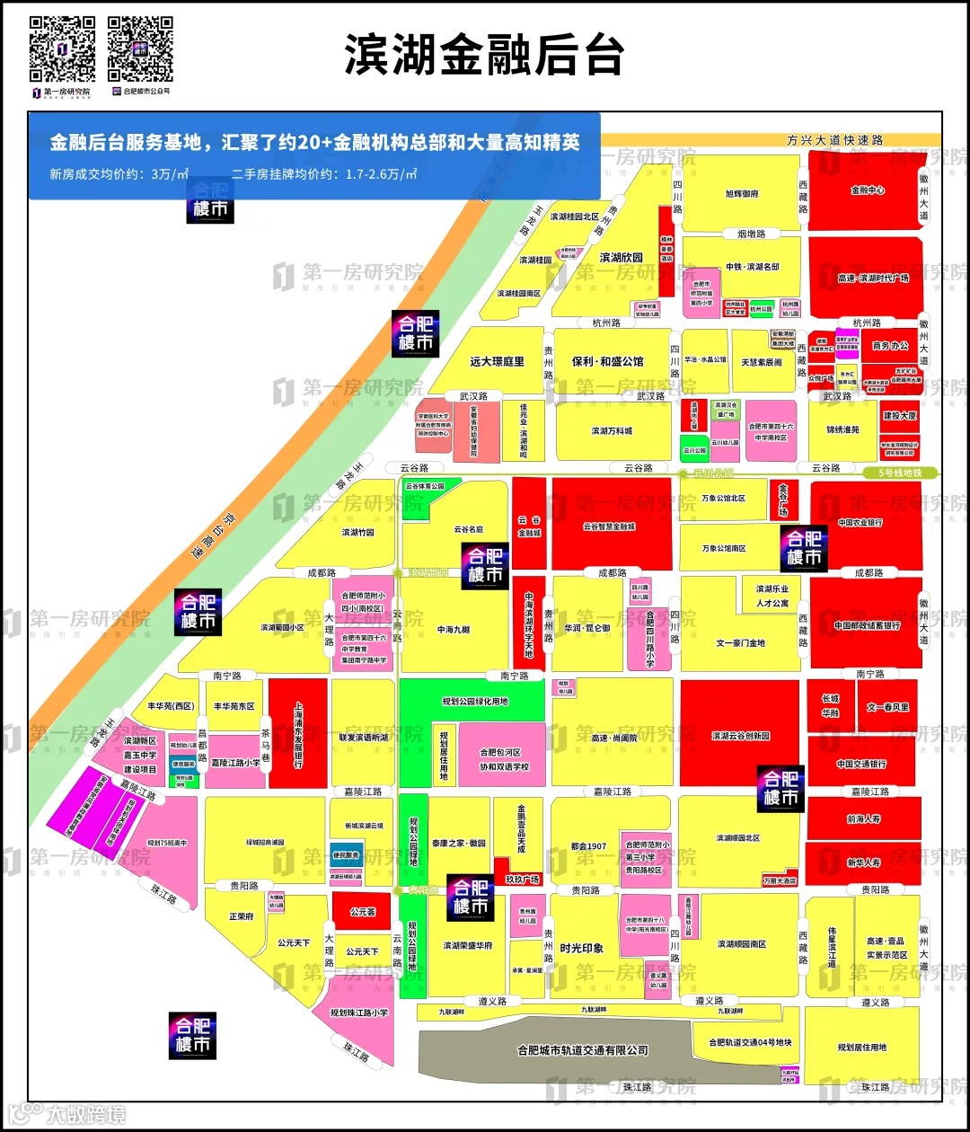 作为滨湖区的2.0板块,金融板块于2009年建设启动,定位长三角区域性金融板块,发展潜力充足,未来规划清晰,定位为“中部金融芯·滨湖智慧谷”。同步上海、杭州等一线城市金融为芯的生长逻辑,是滨湖唯一一个拥有高端产业板块,国有四大行等23家总部级金融机构、保险等金融业巨头入驻,成为面向世界的一张新名片。