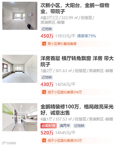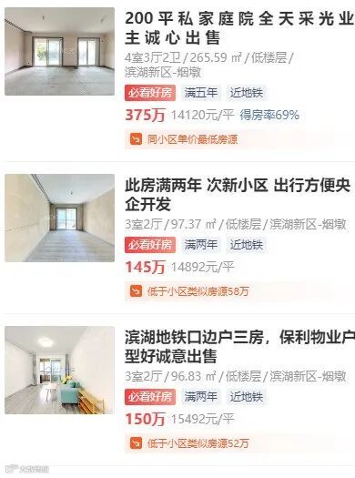突然发现,滨湖金融板块的二手房,很多挂牌价在一万五六,而实际成交价一万出头就能买到。