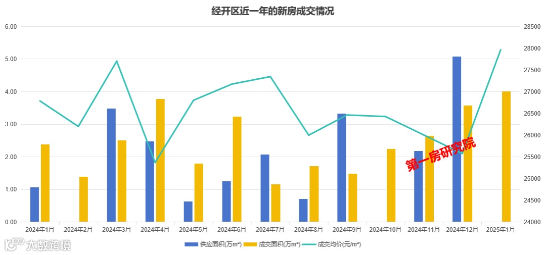根据第一房研究院AI楼市指数系统显示,经开区的新房成交连续5个月上涨!并且1月的成交均价达到了经开区近一年的新高,27963元/m²。1月的主要成交是置地松谷鸣翠,1月该项目成交备案146套,备案均价3万/m²左右。
