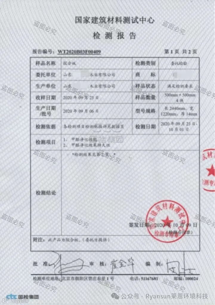 (以上为部分合作企业生产的净醛板第三方检测报告)