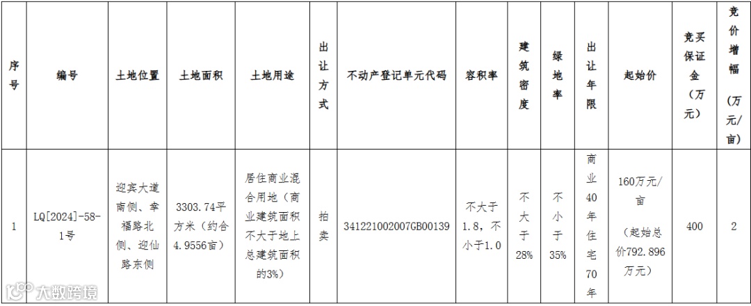 六、本次出让地块的详细资料和具体要求:详见《临泉县LQ[2024]-58-1号宗地国有建设用地使用权拍卖出让须知》。