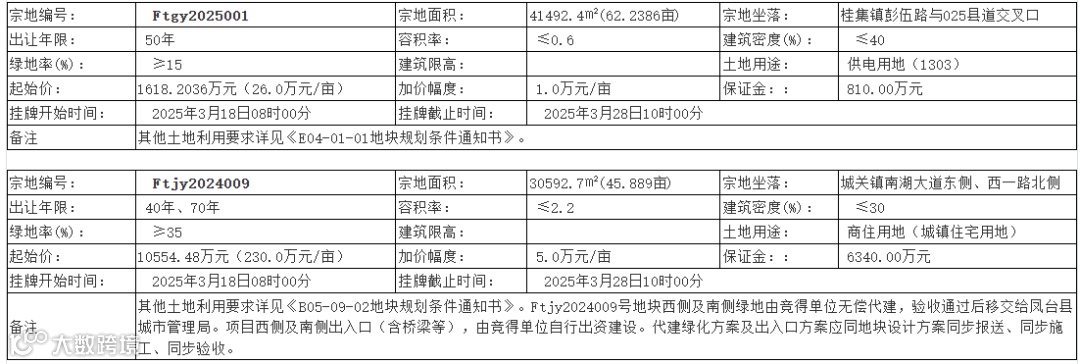 Ftgy2025001号地块:2025年3月18日08时00分 至 2025年3月28日10时00分;