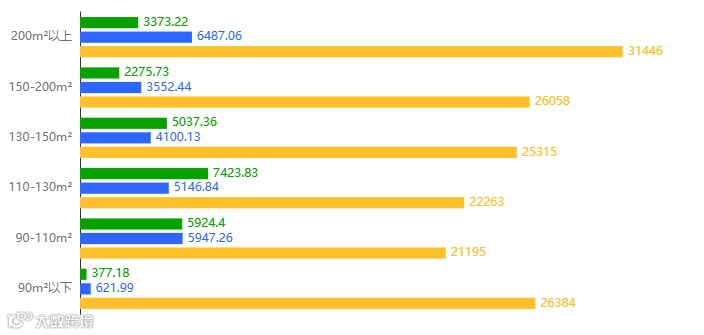 从成交面积段来看,本周成交面积段200m²以上的占比最大。