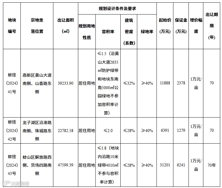 具体公开出让方式由蚌埠市自然资源和规划局于2024年11月25日17:30前告知取得竞买资格的申请人。