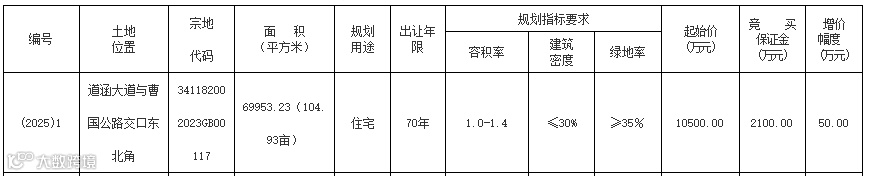 1、拍卖出让:本次国有建设用地使用权公开出让,至2025年1月28日17时申请报名截止,宗地有三个以上(含三个)申请竞买人的,将采用拍卖方式出让。