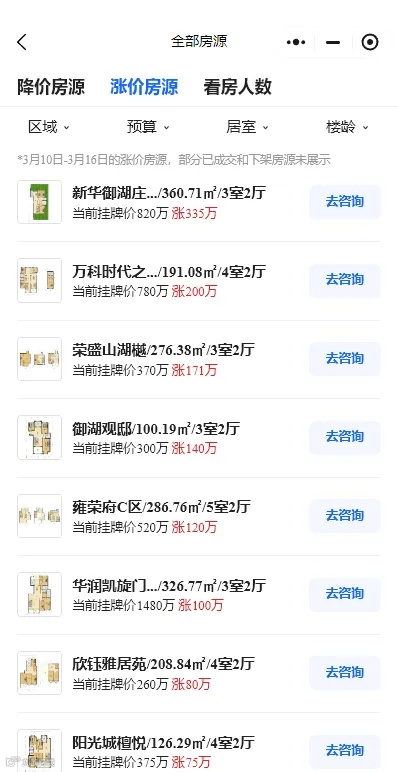 品质次新房加价出售:新华御湖庄园、万科时代之光等小区部分房源挂牌价上调超百万;