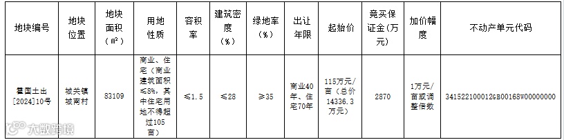 七、成交规则。本次国有建设用地使用权出让设有底价,采用增价出让方式,按照价高者得原则确定竞得人。本次出让成交价款不含契税。