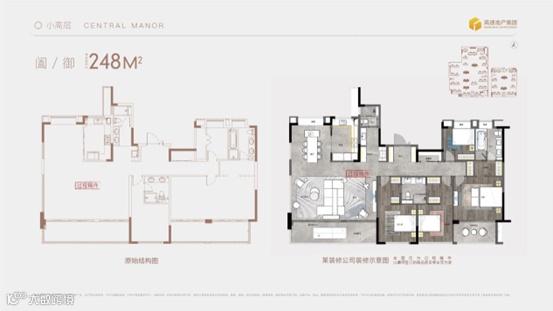248㎡户型为四室两厅三卫,拥有2个超大观景台,270°转角采光无敌。