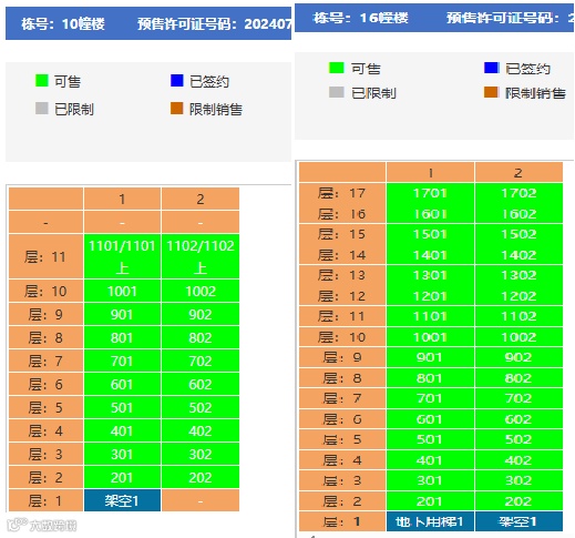 本次取证的是项目的10#楼和16#楼,其中10#楼共11层,20套房源,标准层建面约193平米,均价3.6万/平米;16#楼共17层,32套房源,标准层建面170平米,均价3.2万/平米。