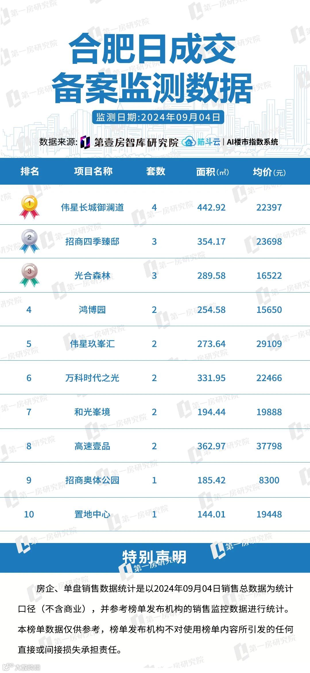 9月4日合肥市区备案住宅类商品房31套,备案均价22935元/㎡。
