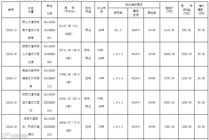 (2024)15号地块1、竞买人须为公司法人,不接受联合竞买。2、该项目须与明光市商务局(投促局)签订投资协议,并约定项目建成后统一招商运营。3、地块项目中商业建筑自持比例不低于25%,自持时间不少于5年。