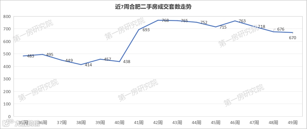 二手房方面,上周合肥二手房成交670套房源,环比下跌0.9%。从合肥二手房成交趋势来看,虽然近几周合肥二手房保持较高的成交量,活跃度较高,但是已经连续三周下跌。