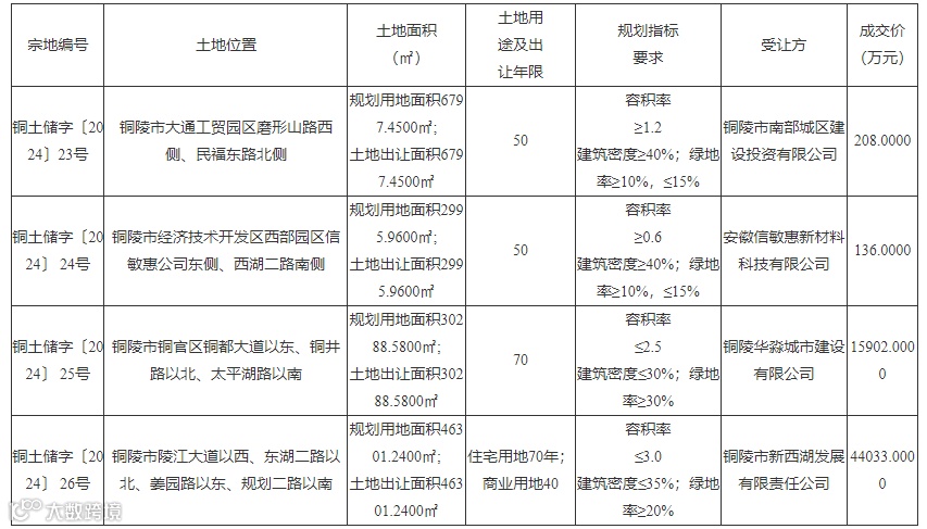 铜陵成交2宗涉宅用地,成交5.99亿元