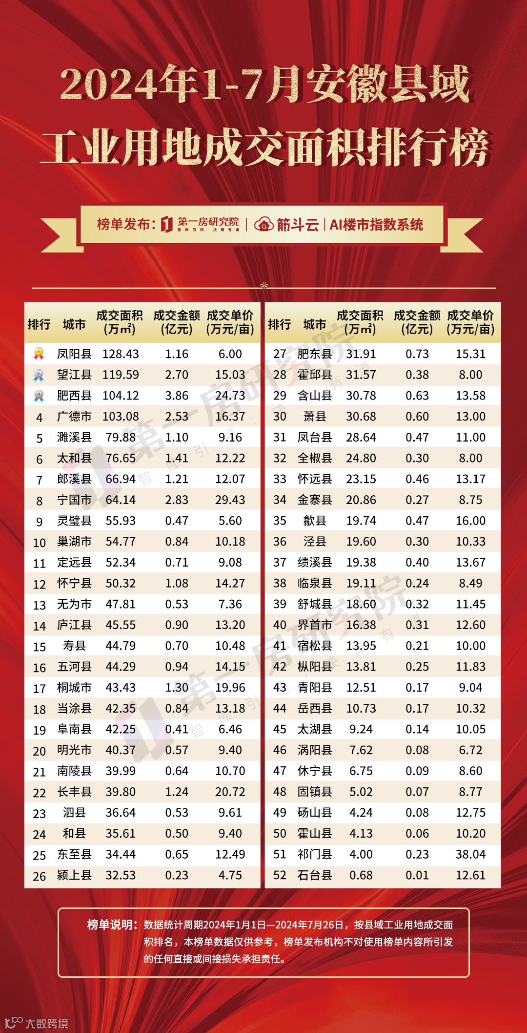 凤阳、望江、肥西县域成交面积前三