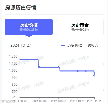 而且此套房源已经历经多次调整价格,累计降价231万。