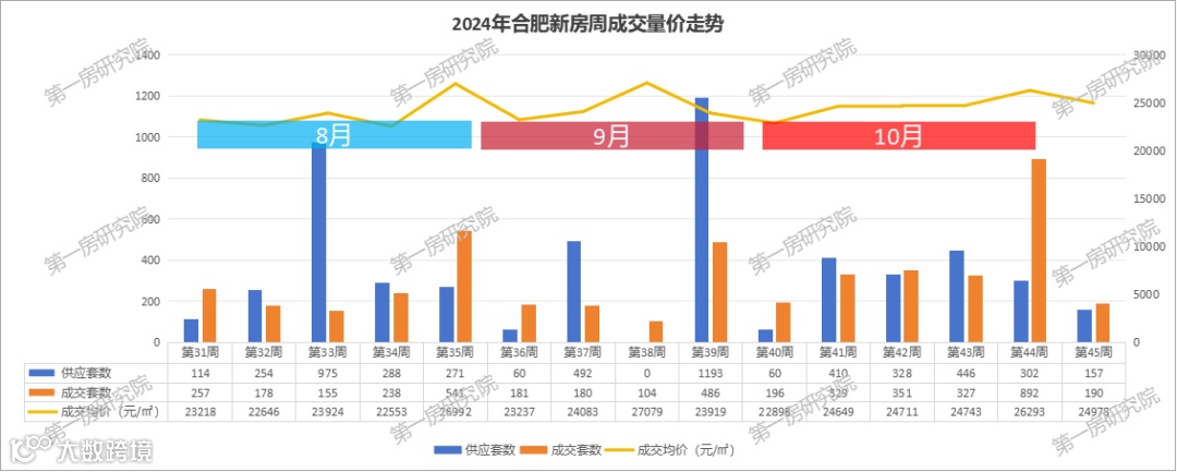 金九银十刚过,11月份合肥新房却出现大幅下跌。根据第一房研究院AI楼市指数系统统计数据显示,上周合肥新房成交190套房源,环比下跌78.7%,基本回到了本轮政策之前的成交量。