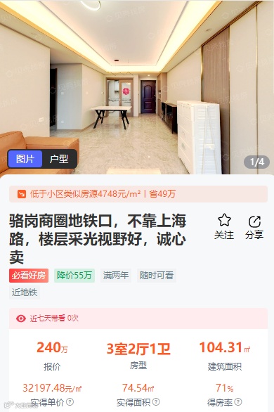 而该套房源也是历经多次降价、加价调整后,最终还是选择降价出售,这也不难开出来,当下房地产市场依然存在很多不确定性,下行压力较大,很多二手房业主也想趁着在此波行情尽快出手,那唯一的选择就是降价。从这也看出来,二手房市场依然是以价换量为主导。