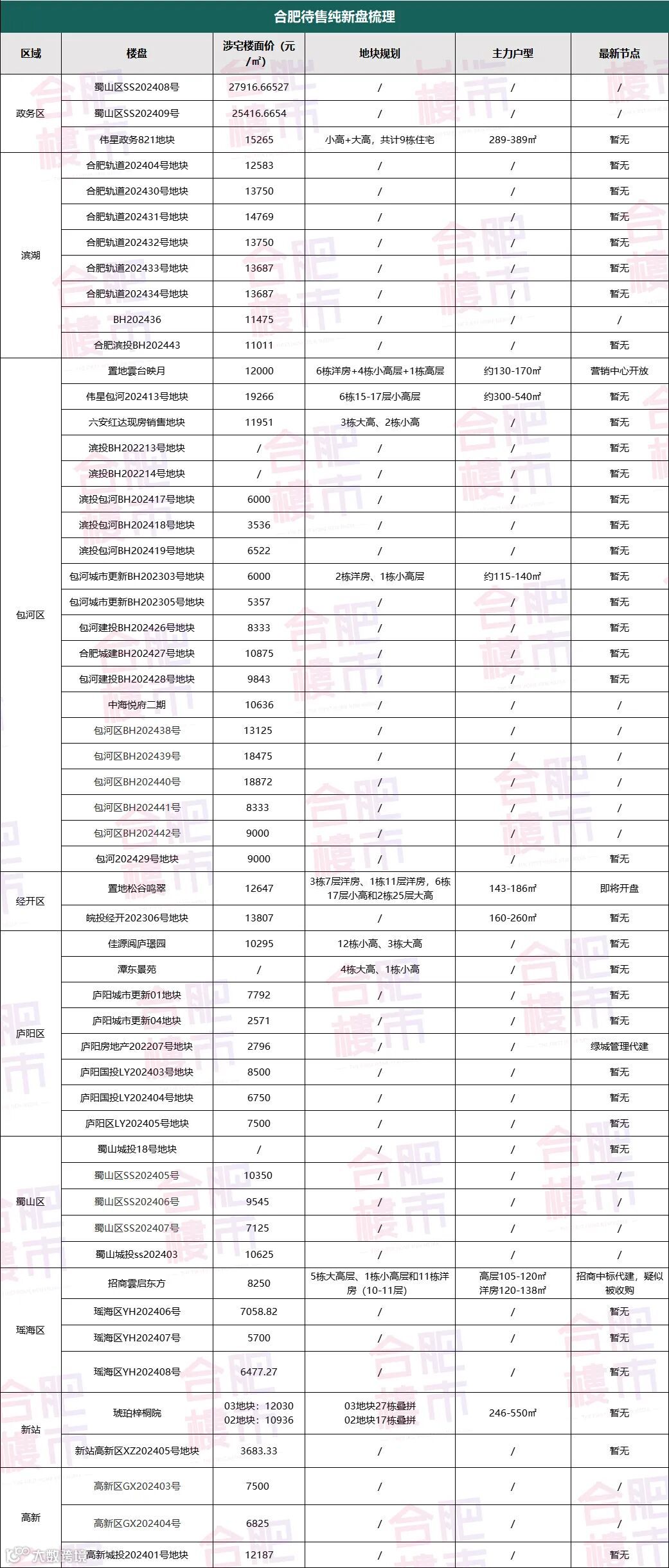 据不完全统计,合肥九区还有55个纯新盘待入市。即将开盘的项目有置地云台映月、置地松谷鸣翠、中海悦府二期、琥珀梓桐院。